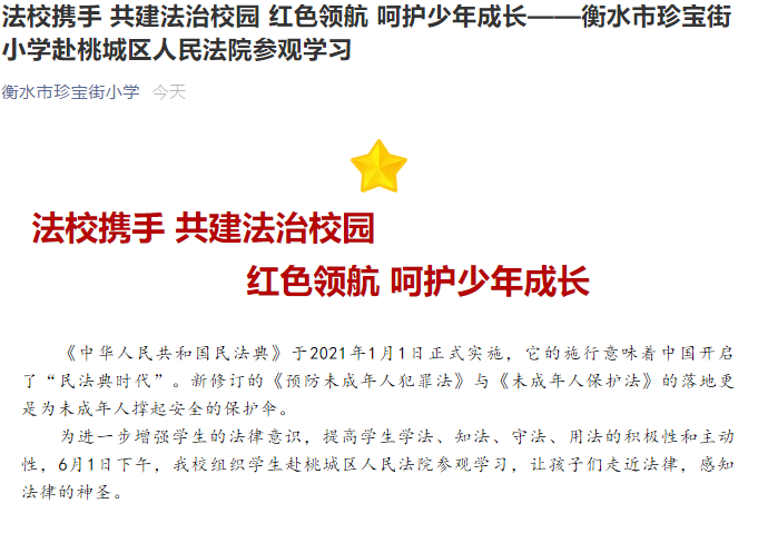 法校携手 共建法治校园 红色领航 呵护少年成长——衡水市珍宝街小学赴桃城区人民法院参观学习