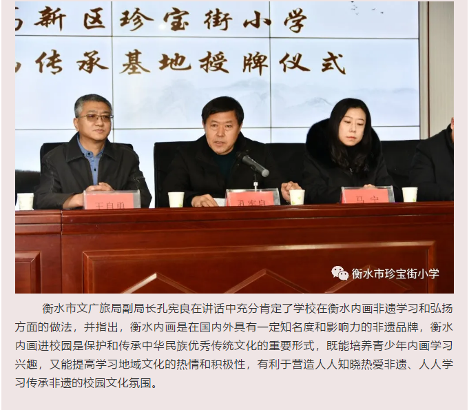 衡水内画进校园 非遗文化永流传——衡水内画传承基地授牌仪式在珍宝街小学隆重举行