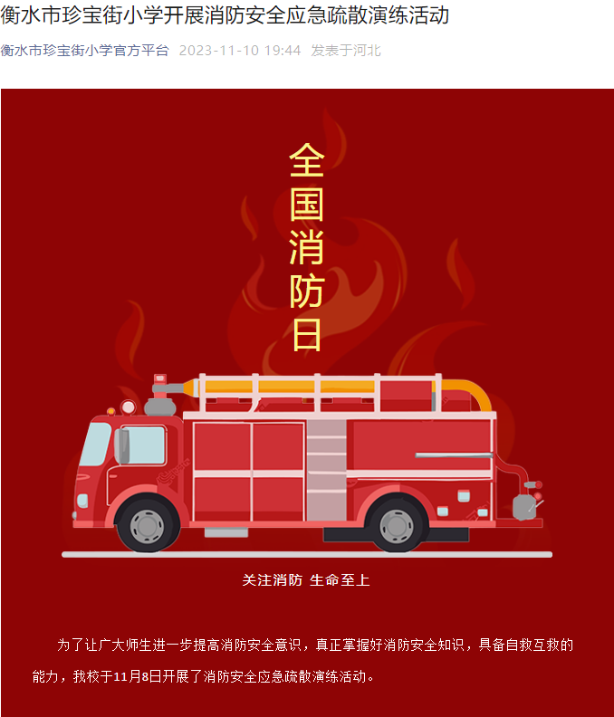 衡水市珍宝街小学开展消防安全应急疏散演练活动