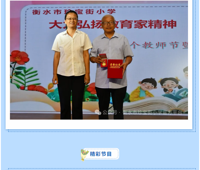 大力弘扬教育家精神 加快建设教育强国——衡水珍宝街小学举行第 40 个教师节庆祝表彰活动