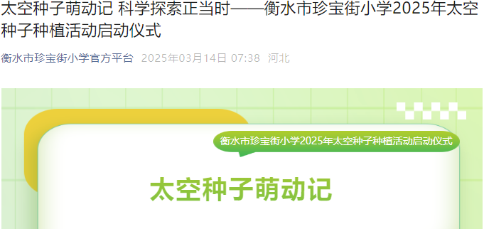 太空种子萌动记 科学探索正当时——衡水市珍宝街小学2025年太空种子种植活动启动仪式