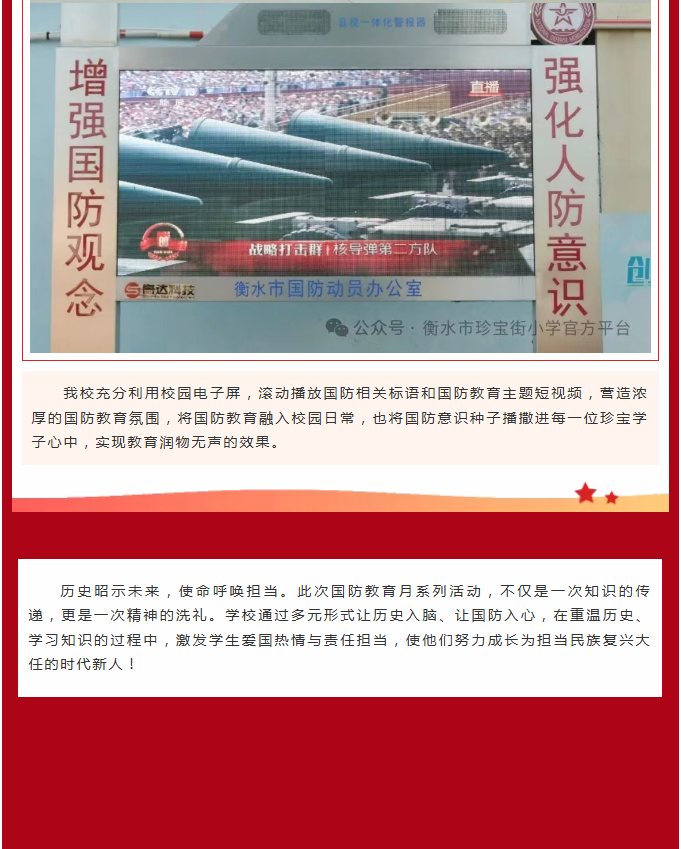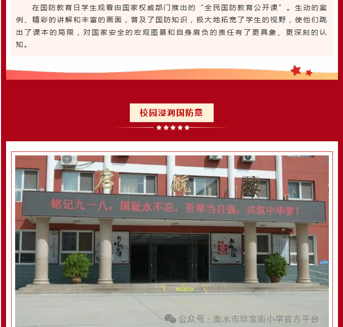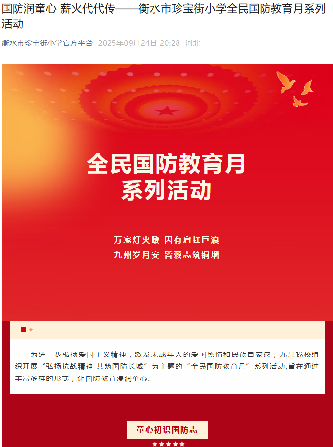 国防润童心 薪火代代传——衡水市珍宝街小学全民国防教育月系列活动