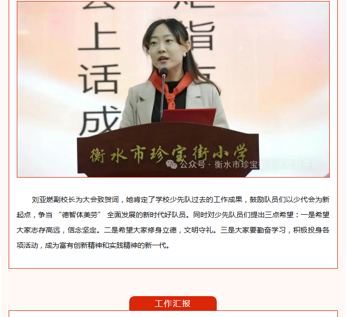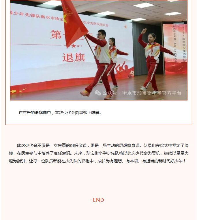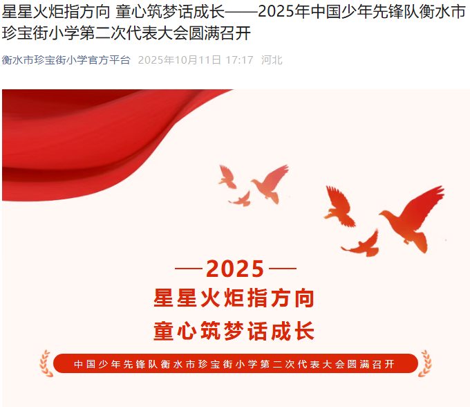 星星火炬指方向 童心筑梦话成长——2025年中国少年先锋队衡水市珍宝街小学第二次代表大会圆满召开