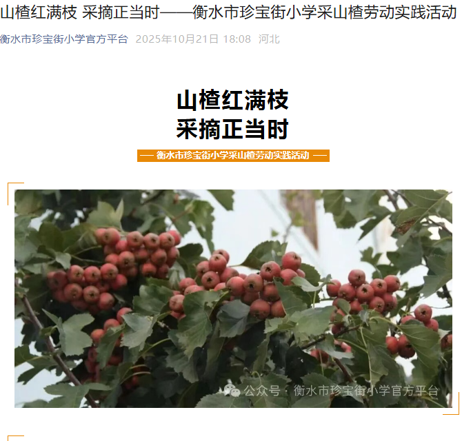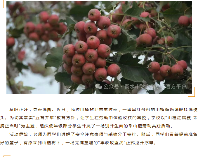 山楂红满枝 采摘正当时——衡水市珍宝街小学采山楂劳动实践活动