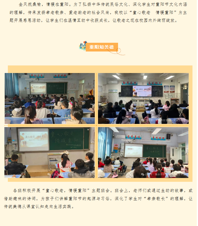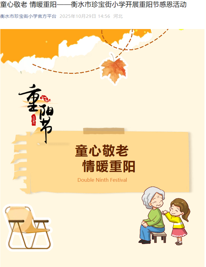 童心敬老 情暖重阳——衡水市珍宝街小学开展重阳节感恩活动