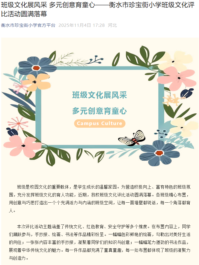 班级文化展风采 多元创意育童心——衡水市珍宝街小学班级文化评比活动圆满落幕